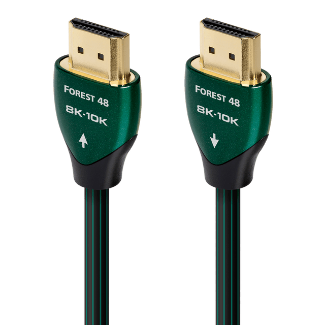 AudioQuest Forest 48 HDMI cables deliver exceptional sound quality with precise construction supporting up to 48Gbps bandwidth. Featuring 0.5% silver-plated copper conductors and direction-controlled design, they efficiently reduce radio-frequency noise for clearer audio performance.